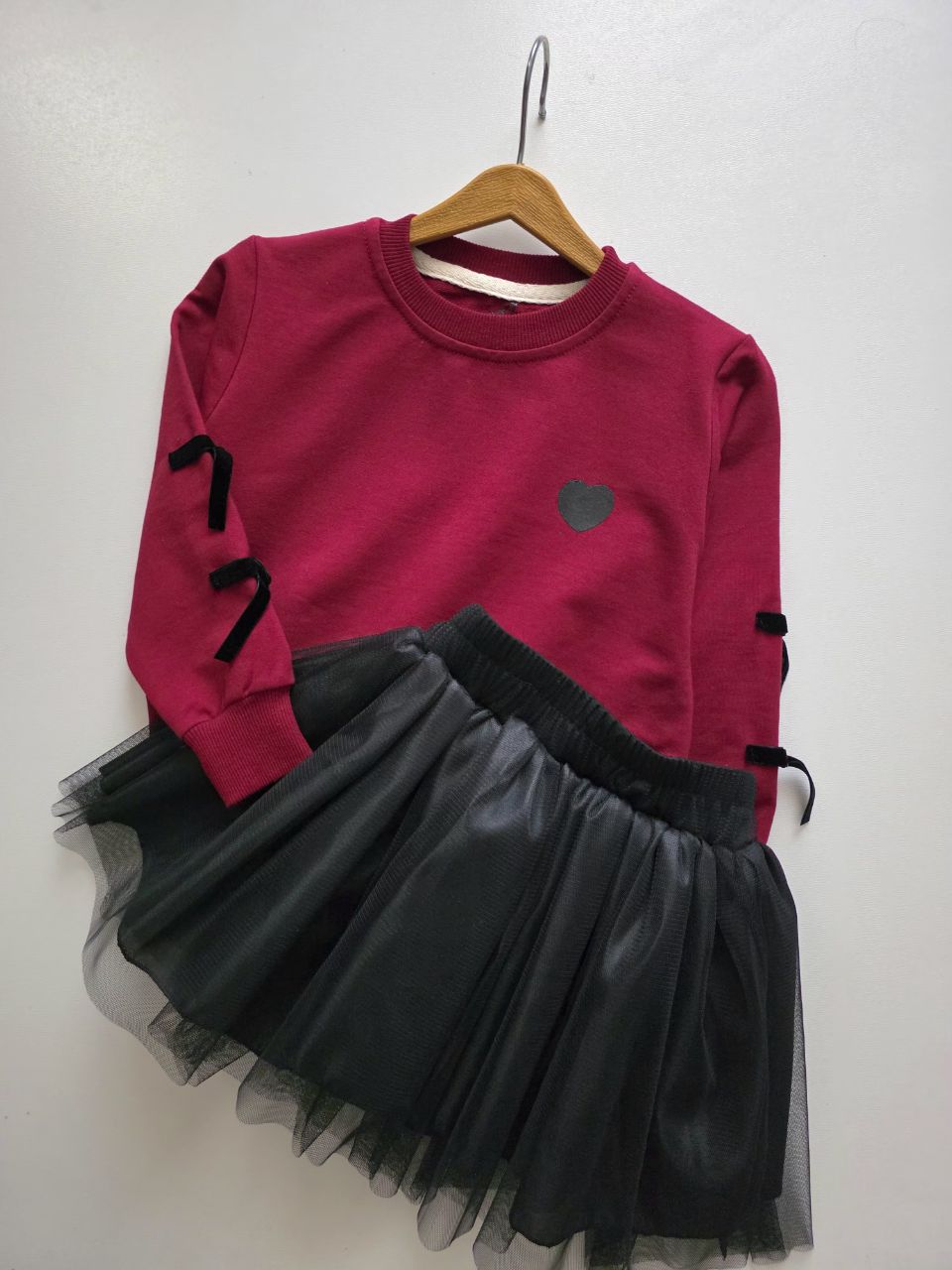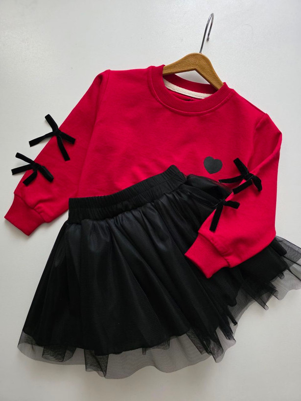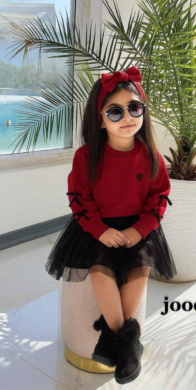 ست زیبای کراپ دامن در دو رنگ قرمز و زرشکی از 2 الی ۵سال