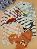 ست زیبای داینو دورس و شلوارک کتان از 1 الی7سال ونیم